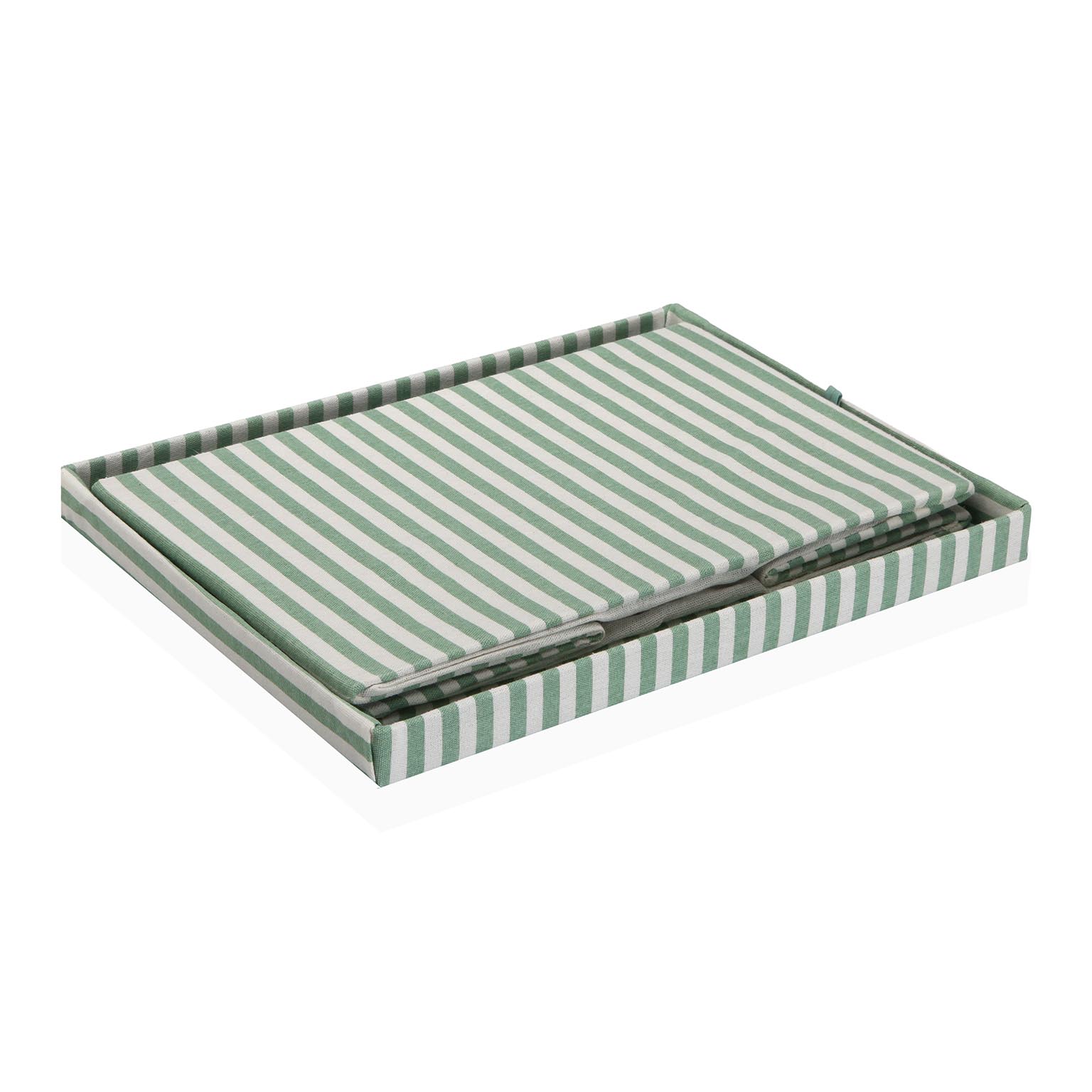GREEN STRIPED RECTANGULAR LIDDED BASKET