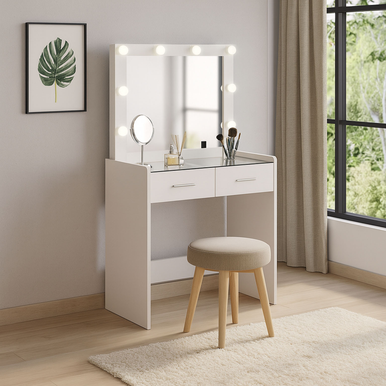 WHITE DRESSING TABLE WITH LED LIGHTS
